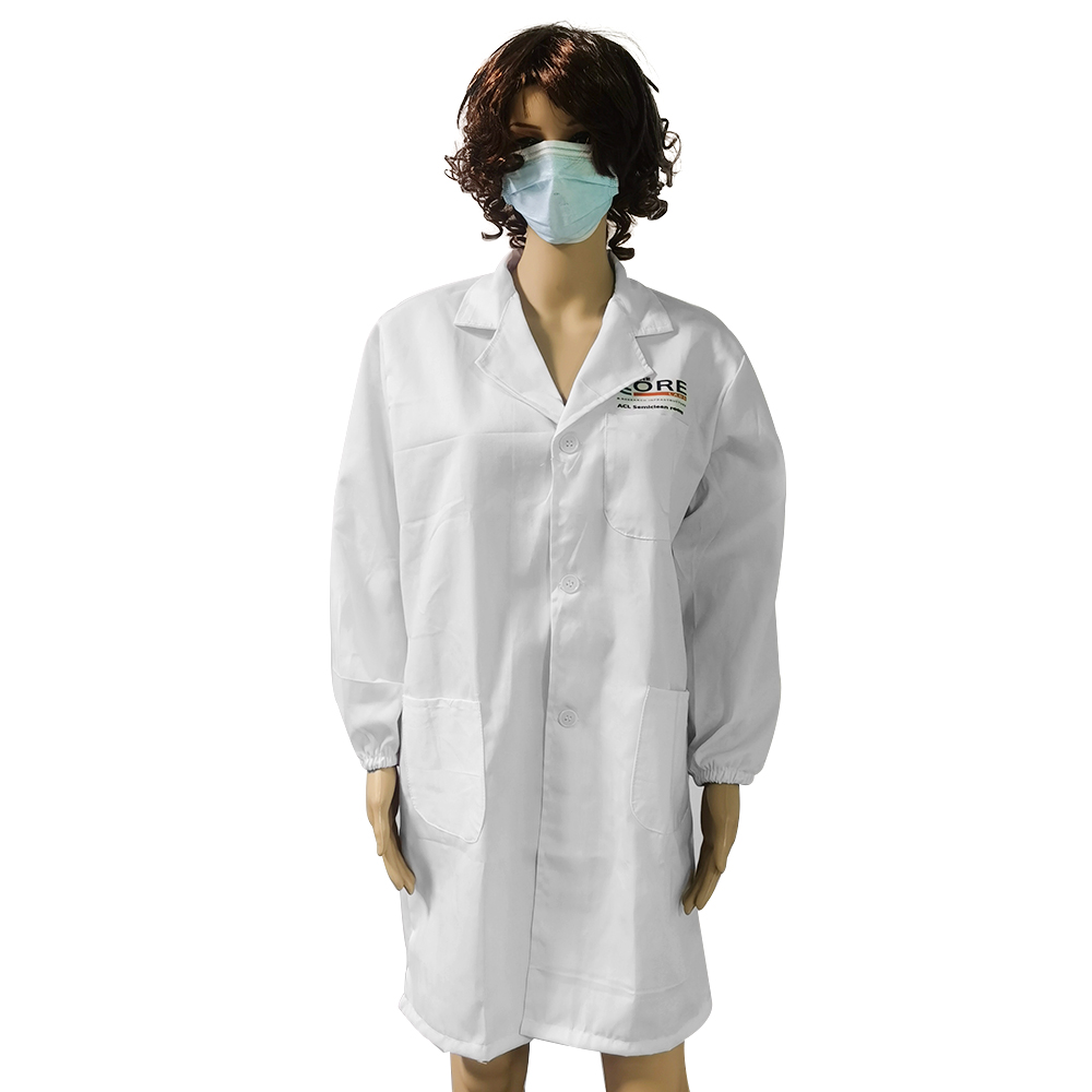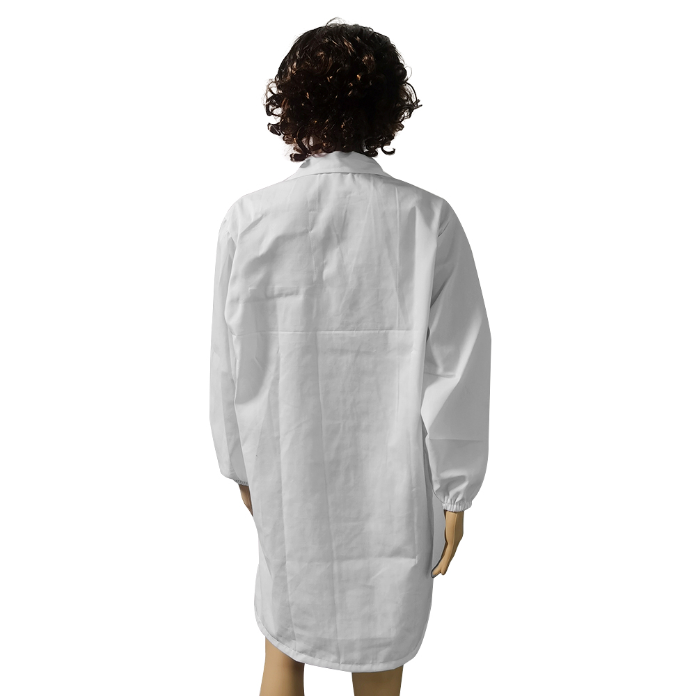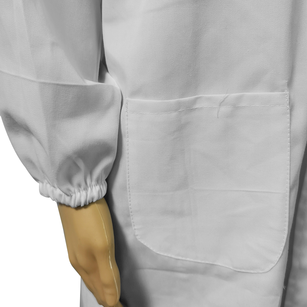 Bata de trabajo para la industria alimentaria, sin pelusa, 65% poliéster + 35% algodón