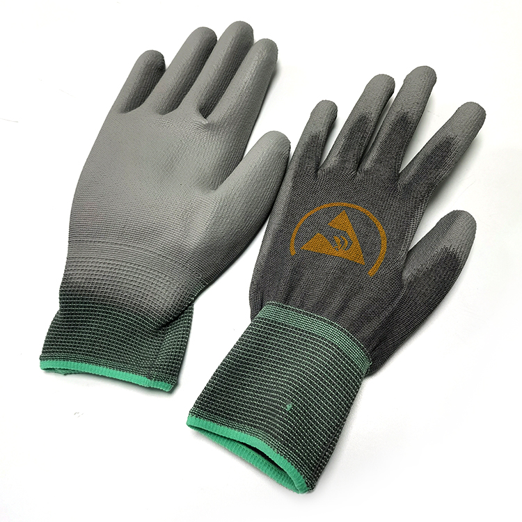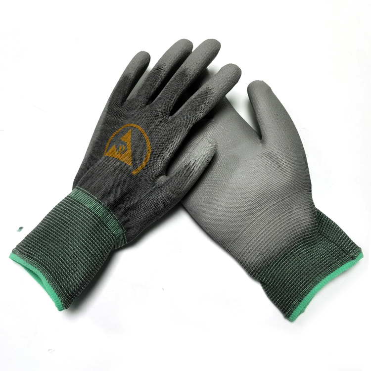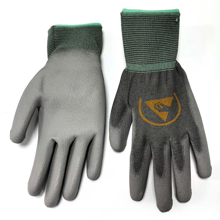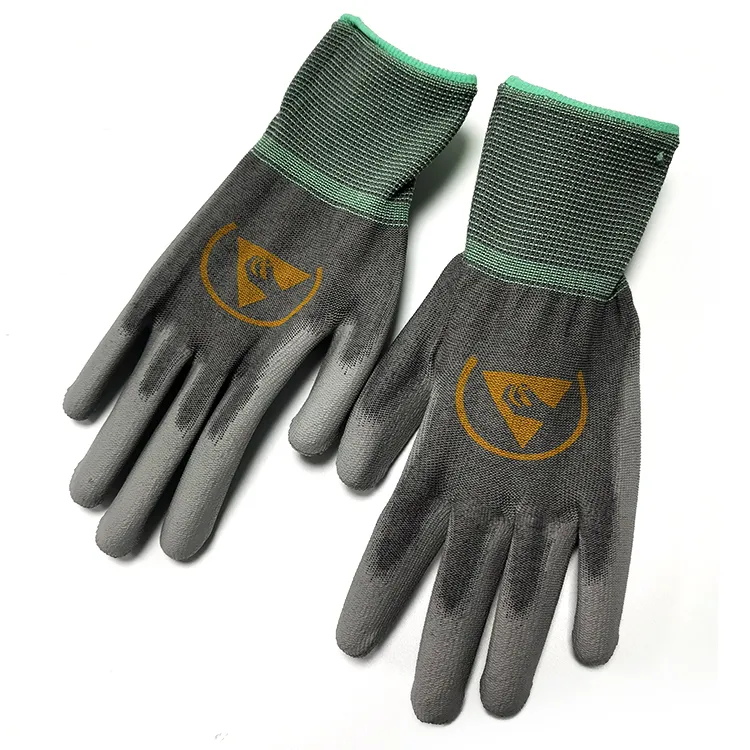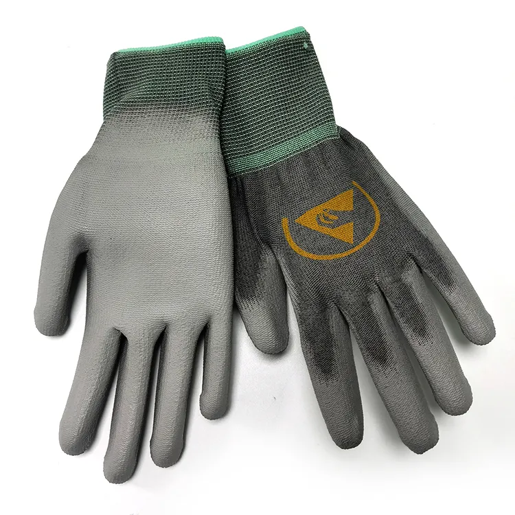 Gery ESD Guantes recubiertos de PU antiestáticos Guantes de trabajo seguros para la palma de la mano Guantes antiestáticos Guantes recubiertos de PU