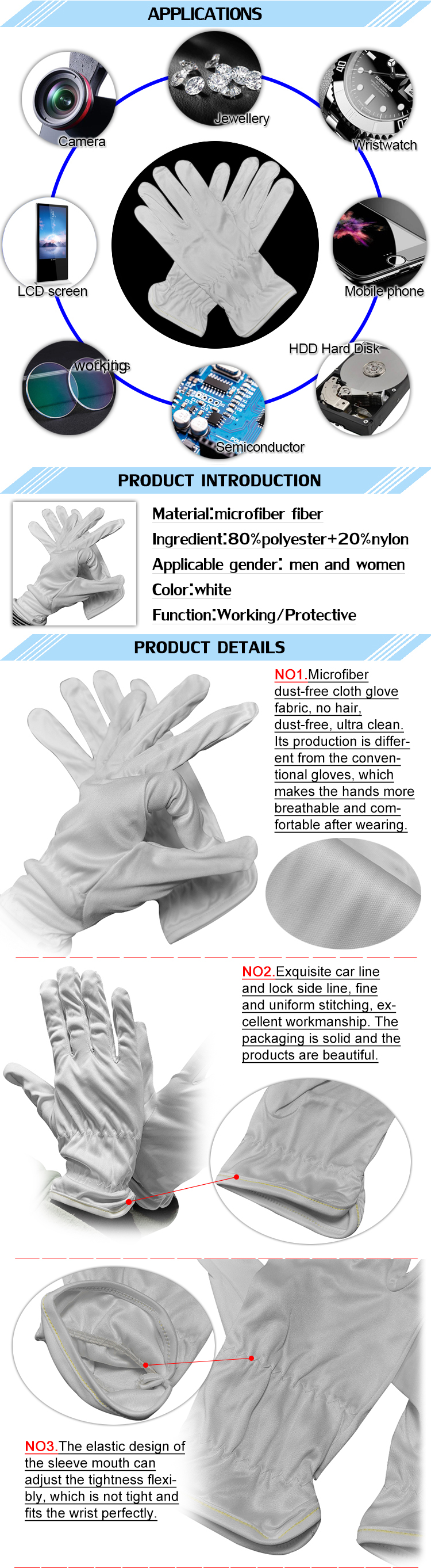 | Función: | protección de seguridad, guantes de microfibra, guante de trabajo, Guante de trabajo, Guantes ceremoniales | Lugar de origen: | Jiangsu, China |