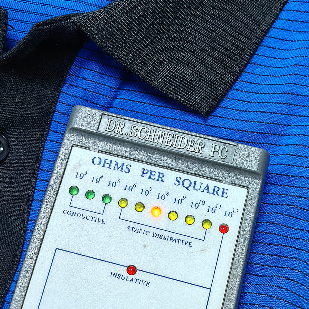 ? Cumplimiento de los estándares ESD: Las camisetas tipo polo antiestáticas ESD generalmente se fabrican para cumplir con los estándares industriales para el control de ESD, como ANSI/ESD S20.20 o IEC 61340. Estos estándares definen los requisitos para las prendas seguras contra ESD, incluidas las especificaciones de resistencia y otras características de presentación.