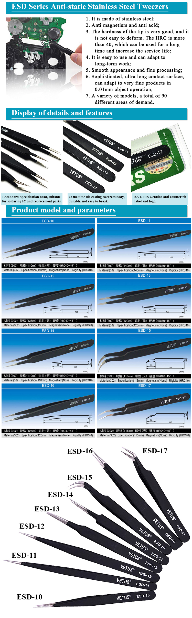Ltd. siempre se dedica a la investigación y el desarrollo, la producción y la venta de las pinzas antiestáticas originales VETUS Pinzas ESD de acero inoxidable antiestáticas de alta precisión para herramientas de ensamblaje de sala limpia. Basado en las propiedades originales de las pinzas antiestáticas VETUS antiestáticas de acero inoxidable antiestático de alta precisión para herramientas de ensamblaje de sala limpia, hemos seleccionado la tecnología para fabricar el producto después de realizar múltiples pruebas y experimentos. Nuestro producto está calificado para ser utilizado en los campos de aplicación ) de pinzas ESD. En el futuro, Ltd. hará pleno uso de la sabiduría de nuestros talentos y actualizará nuestras tecnologías para mantenerse al día con las tendencias, para hacer realidad nuestro sueño de ser una empresa de fama mundial.