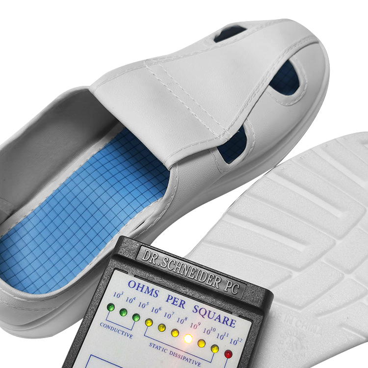 1, resistencia eléctrica de entre 10e6~10e9Ohms, proporciona contacto eléctrico continuo del pie a tierra según lo exigen los estándares ESD.