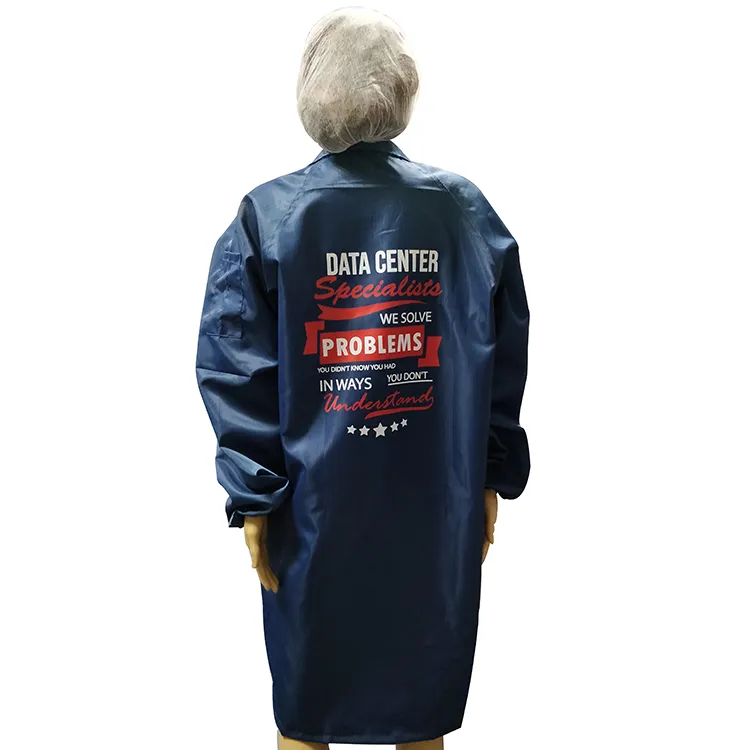 Delantal azul oscuro para sala blanca ESD 3/4 con logotipo sublimado