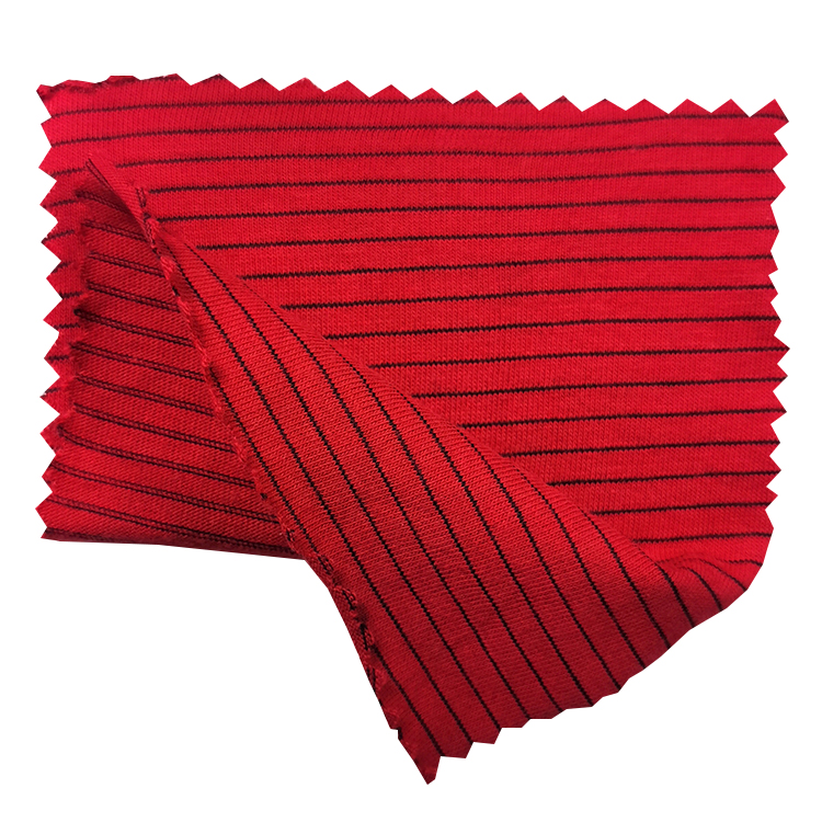 Tela de camiseta antiestática de punto ESD 98% algodón 2% fibra de carbono 4mm tela de camisa Polo de algodón de rayas dobles
